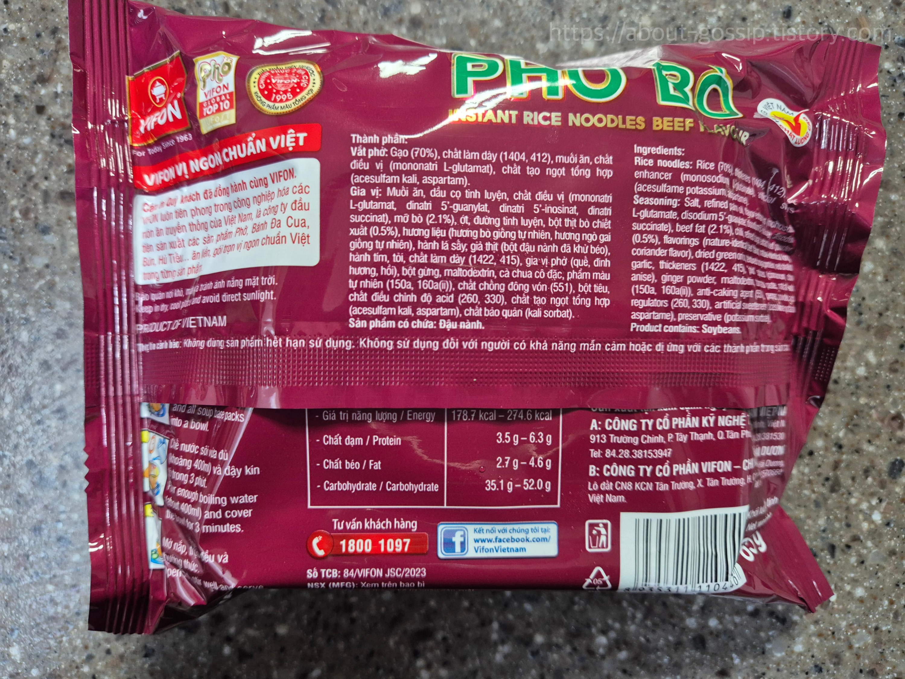 - 제품명: 포보(PhoBo) 봉지 쌀국수