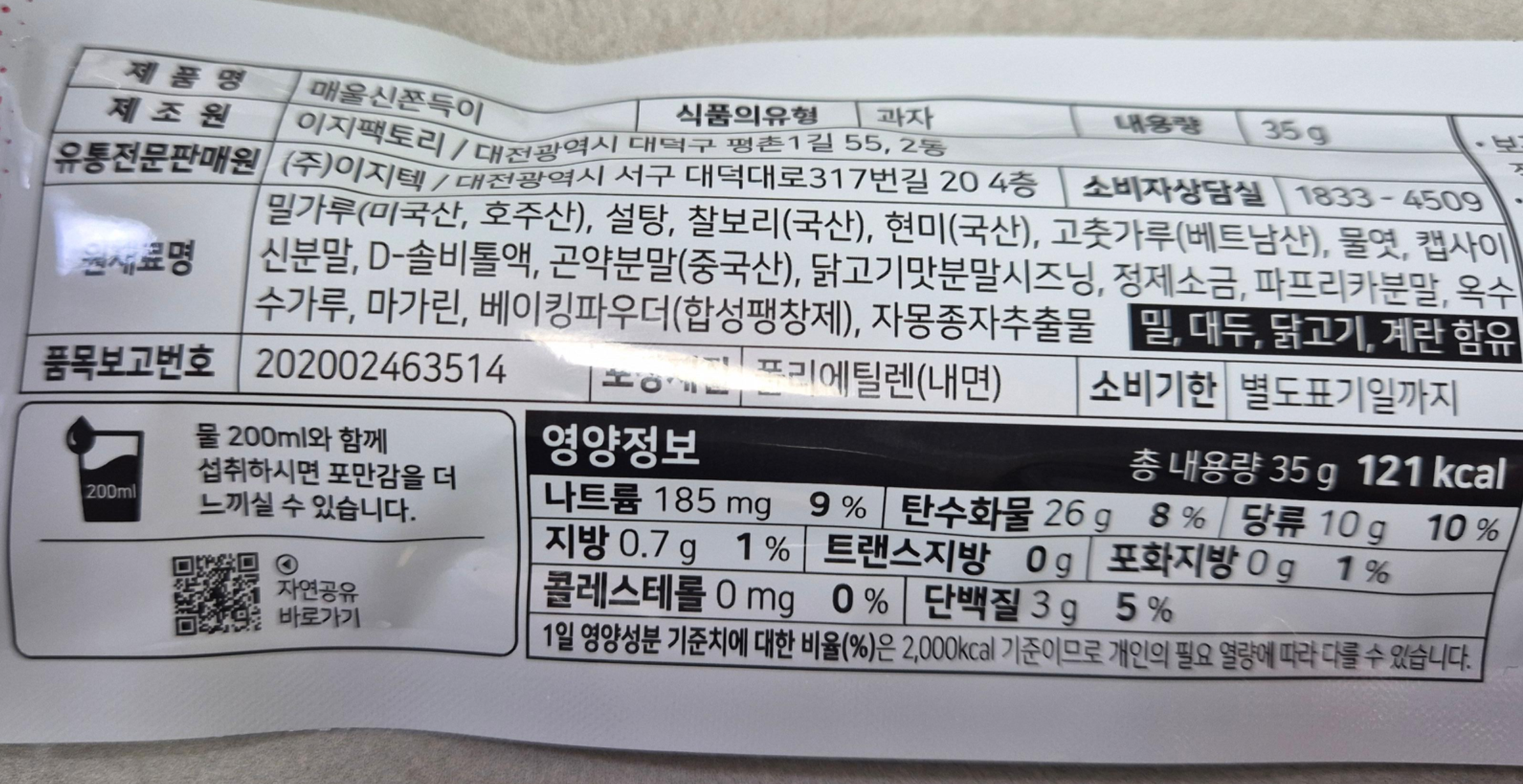 하지만 이 제품은 간식 서비스로 받았기에 딱히 구매처나 가격은 알 수 없지만, 제 돈 주고는 절대 안 사 먹을 것 같은 예감이 들었습니다.