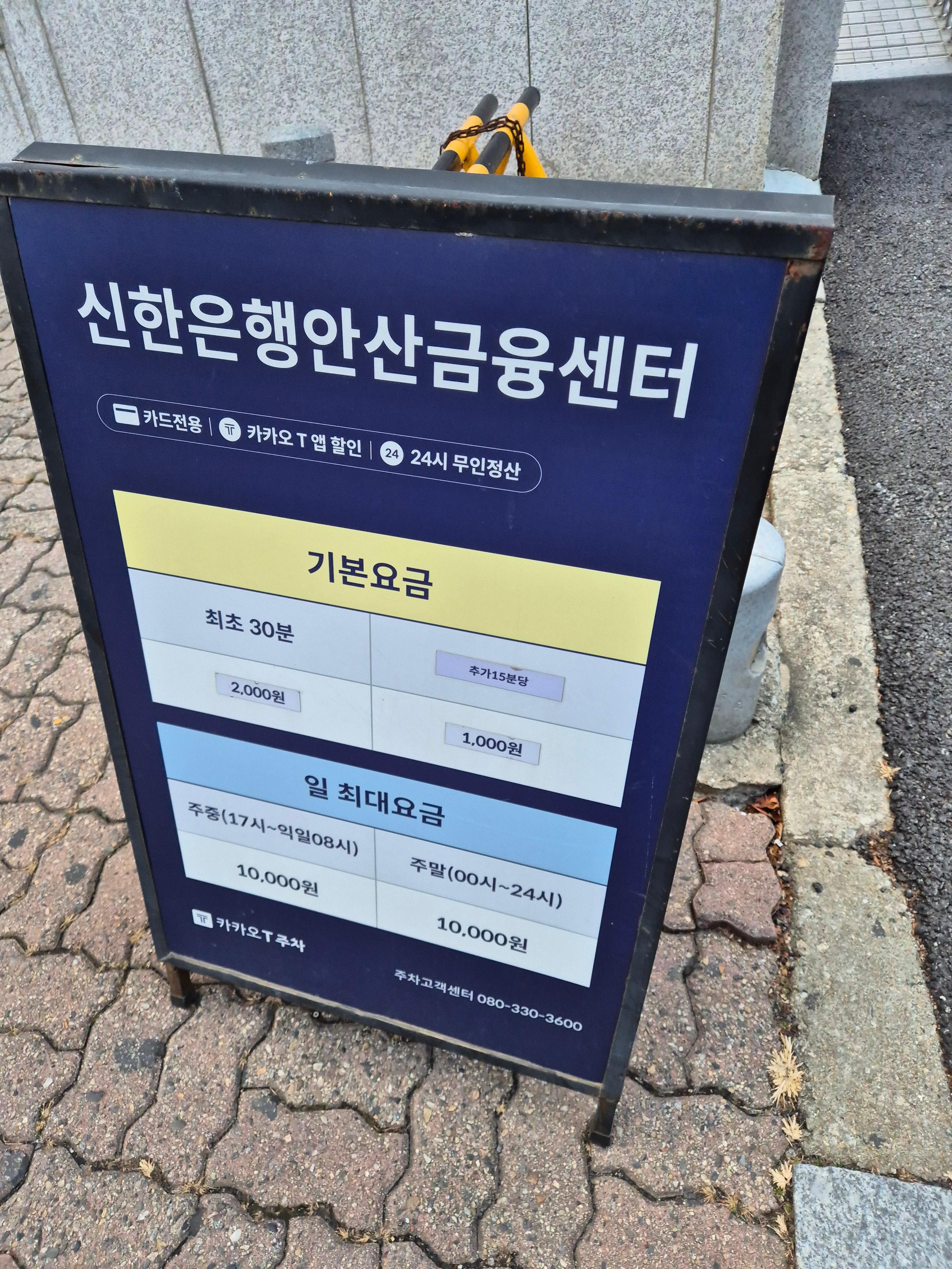 신한은행 쪽은 기본 요금(30분 2,000원)은 동일하지만, 일 최대 요금이 10,000원으로 국민은행(30,000원)보다 훨씬 저렴하더라고요. 혹시나 고잔동에서 하루 종일 주차할 곳을 찾으신다면 옆쪽 주차장 요금도 비교해 보시는 것을 추천드려요!